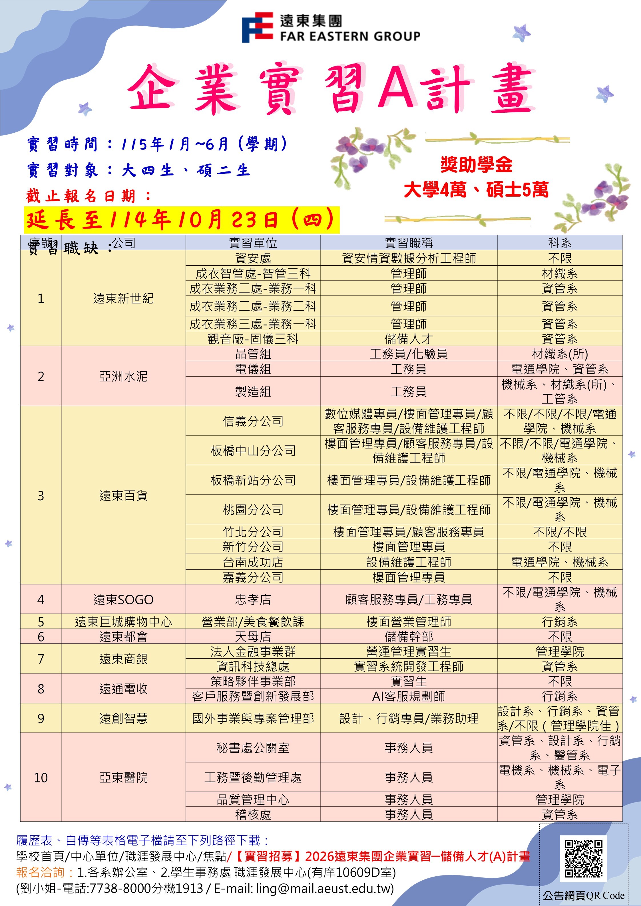 2026遠東集團產學儲備人才培訓(A計畫實習)