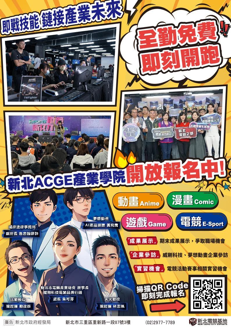 新北市政府經濟發展局114年度「新北ACGE產業學院」電競人才培訓課程宣傳