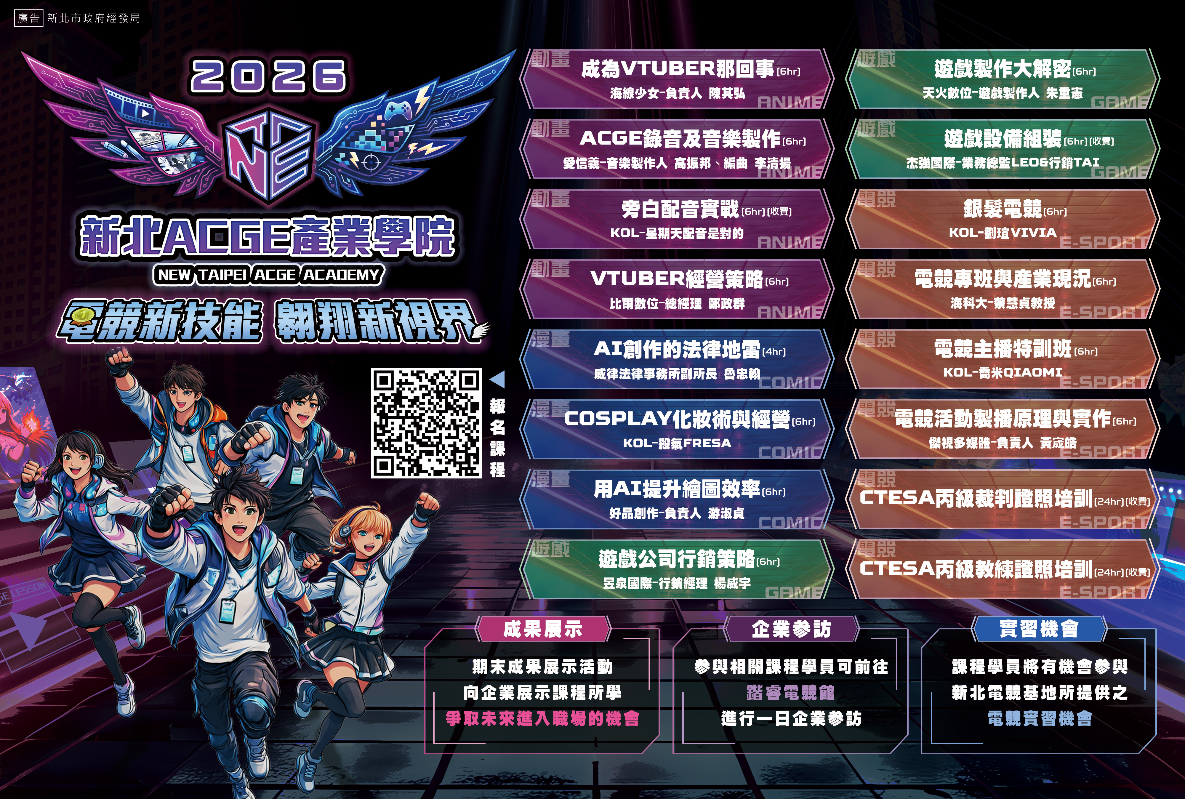 新北市政府經濟發展局115年度「新北ACGE產業學院」課程及新北電競基地歡迎使用