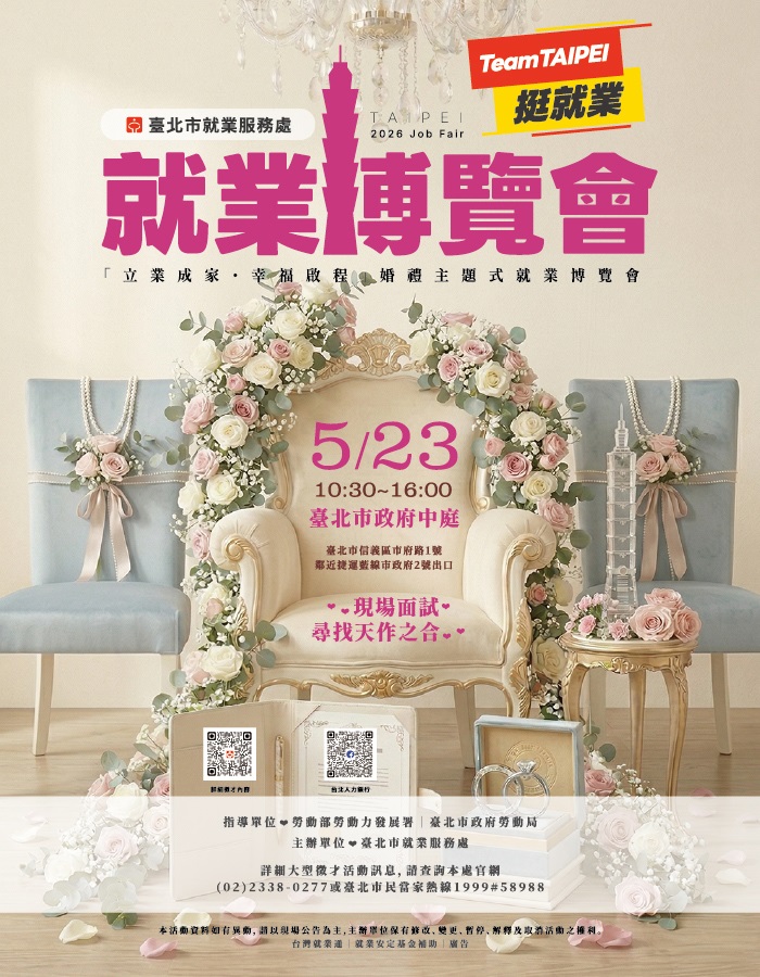 【徵才活動】台北市就服處5月23日「立業成家・幸福啟程」就業博覽會歡迎參加